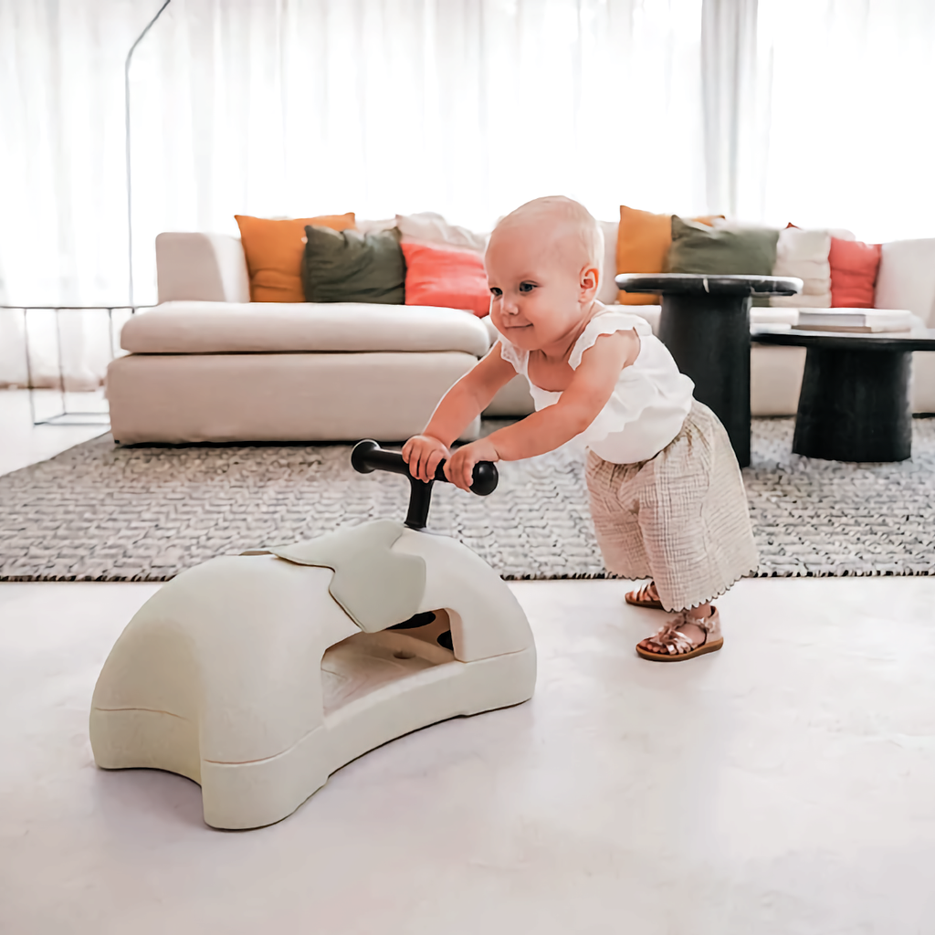 Juguete 3 en 1 para bebés a partir de 6 mesesEn primer lugar, el My First puede utilizarse como patinete para bebés sin las ruedas. A partir de los 6 meses, las almohadillas deslizantes integradas proporcionan suficiente estabilidad para trepar y apoyan los primeros intentos de ponerse de pie.