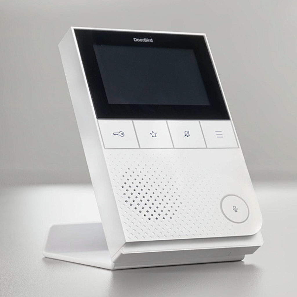 Il supporto da tavolo A8003, sviluppato appositamente per il posto interno DoorBird A1101, consente di utilizzare comodamente il posto interno su tavoli e credenze. La struttura in acciaio di alta qualità e il cuscinetto antiscivolo sul lato inferiore garantiscono stabilità e aderenza ottimale alla superficie.